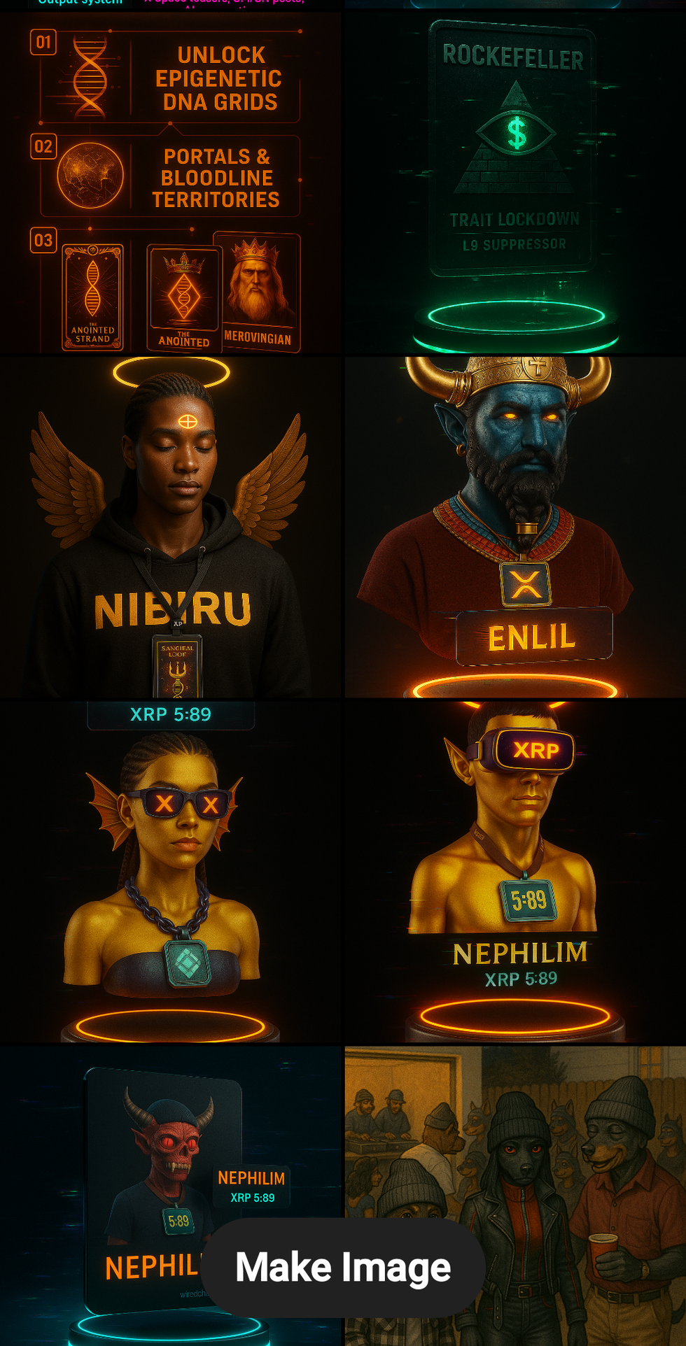 This project features futuristic digital art with mythical and sci-fi elements. It includes images of futuristic characters with digital and cosmic elements, as well as symbols such as star, globe, eye, book, and snake.